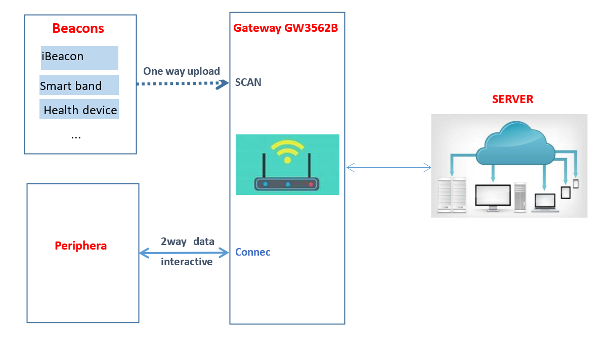 The coverage radius of GW3552B is 180 meters in an open distance. The configuration interface of the Bluetooth gateway is opened. Customers can connect to their own private cloud platform without secondary development of the Bluetooth gateway. Customers only need to store, analyze and apply the data uploaded by the gateway.